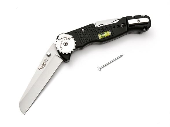 I know, right? Talked about a missed opportunity. This 3” blade, wire stripper, bubble level, and pencil sharpener will come in handy, I guess. I’m sure it’s a perfectly useful, conveniently compact knife for all my carpentry needs. But I was really looking forward to swinging a two-handed broadsword around the construction site. I’m not giving up – I’ll find a construction sword if it kills me. I didn’t make those chainmail coveralls for nothing.