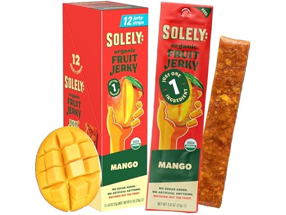 In the Box: (1) Solely - Organic Mango Fruit Jerky - 12 Individually Wrapped Fruit Strips - Fruit Leather Made from Dried Fruits - Healthy Snacks, Vegan - 0.8oz (23g)Sales Stats