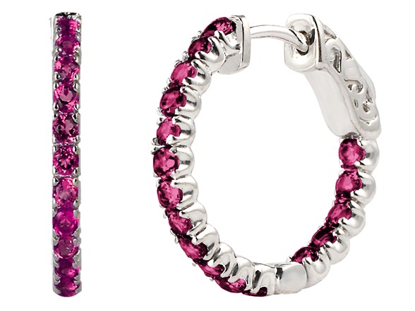 (1) ZKS Designs Sterling Silver Created Pink Saphire Gemstone Inside-Out Vault Lock Hoop Earrings