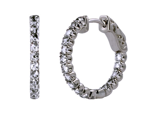 (1) ZKS Designs Sterling Silver White Topaz Gemstone Inside-Out Vault Lock Hoop Earrings