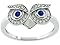 (1)Diamonere Sterling Silver Pave Owl With Sapphire Colored CZ Eyes Ring