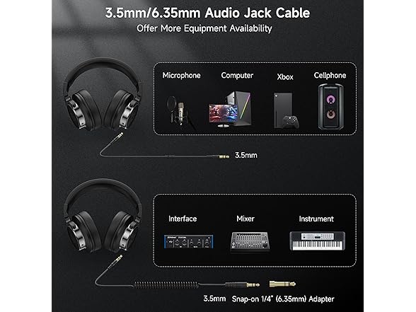 - No Adapter Required: A long-style 5.7-6 ft coiled cord easily reaches from the TV or stereo to your chair. This headphone comes with a standard-sized 6.35mm plug and a 3.5mm plug, both of which are completely detachable, allowing you to connect the mixer of your choice. Compatible with most smartphones, PC, computers, tablets, and all devices equipped with a 3.5mm or 6.35mm audio jack