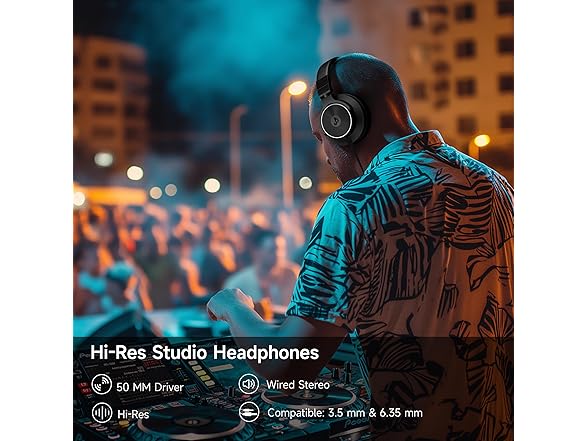 - High-Resolution Sound Quality: The wired headphones boast large 50mm unit drivers that produce dynamic bass, balanced mids, and precise treble, delivering powerful bass, clear vocals, and immersive stereo sound. With a frequency range of 20Hz to 20kHz, these headphones wired provide an exceptional listening experience for DJs, mixers, music enthusiasts, and recording artists, enhancing enjoyment during DJ sessions, mixing, monitoring, or music listening, while also enabling better self-monitoring of your voice during recording