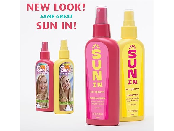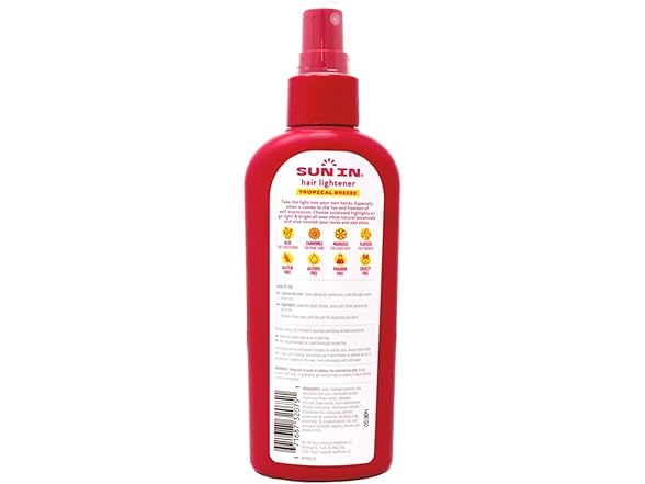 Sun-In Tropical Breeze Hair Lightener gives your hair the look you've been wanting. Sun In is the fast, easy way to beautiful, lighter hair. Just spray it in. It starts working with just one application. And it's easy, just spray it in and let the heat of the sun or a blow dryer do the work! There's no easier way to a lighter, brighter look. It is alcohol-free and made with natural extracts.
