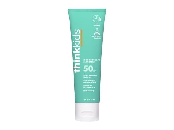 (1) Thinkkids Safe Mineral Sunscreen SPF 50+, 3 Fl Oz, Natural, Water Resistant Reef Safe Sunscreen for Children, Broad Spectrum UVA/UVB Sun Screen