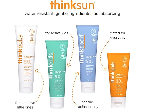 - SUNCARE BY THINK SUN: Thinksport has your family covered with gentle, reef-safe ingredient based sunscreens, made for delicate and sensitive skin without sacrificing protection