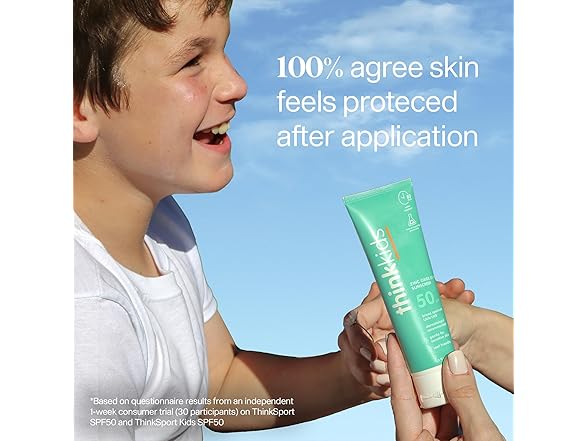 - SAFE, NATURAL PROTECTION: Thinksport Kids sunscreen provides SPF 50+ sun protection for children. The broad spectrum UVA & UVB children’s sunblock is suitable for daily use on kids’ sensitive skin