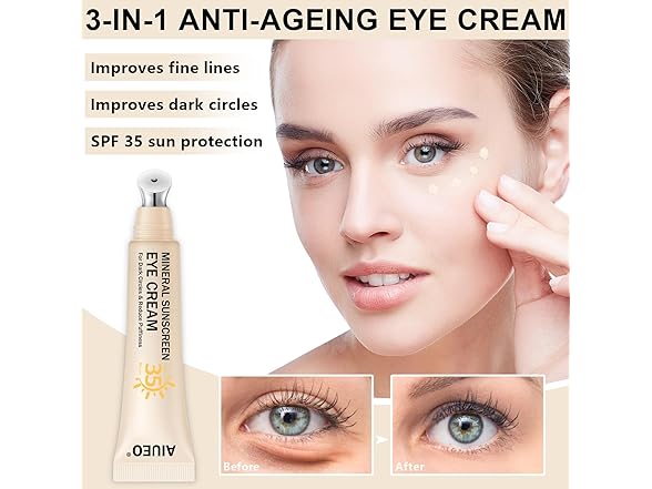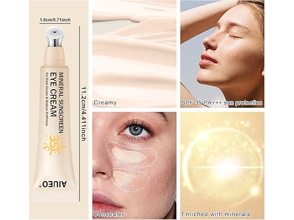 Topcent Mineral Eye Cream for Sunscreen, 3-in-1 Anti-Aging Eye Cream,Filter Phone Blue Light for Dark Circle and Fine Lines,15ML(#01 Light)