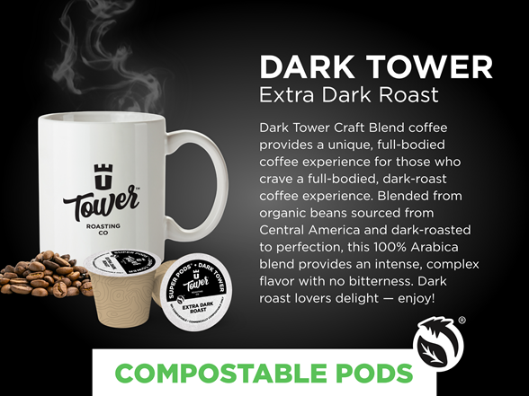 Enjoy small-batch roasted craft coffee from the comfort of home. Our Dark Tower SUPER PODS Variety Pack contains one 96ct. box of Grade 1 Organic Specialty Arabica Coffee. Savor and share with friends and family.