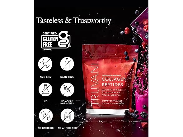 In the Box: (1) Truvani Hydrolyzed Collagen Peptides | Unflavored | 28 Servings | 20g Grass-Fed Collagen Protein Powder | Promotes Hair, Skin, and Nail Health | Dairy & Gluten Free | Women & Men | Package May VarySales Stats