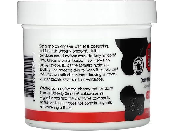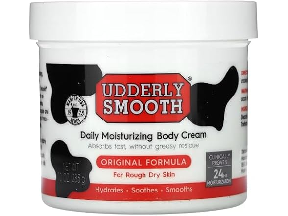Udderly Smooth Daily Moisturizing Body Cream provides deep hydration for normal to dry skin without any greasy residue. This 24-hour moisturizing cream is expertly formulated with allantoin and glycerin, which soften, smooth, and soothe skin. Proven ingredients effectively address dryness and flakiness, promoting a healthier skin appearance and body moisturization. Suitable for sensitive skin, offering immediate relief from roughness.