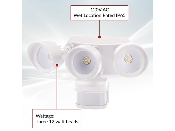 UL Listed Outdoor LED Security Three Headed Floodlight with Motion Sensor