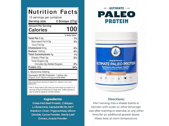 - Trust Your Gut: With delicious flavored powders that taste great without the added sugar, Ultimate Paleo Protein doesn't just go down easy, it's quickly digested and absorbed—leaving you feeling great. All while delivering 1 billion CFUs of probiotics for a healthy bacterial balance.