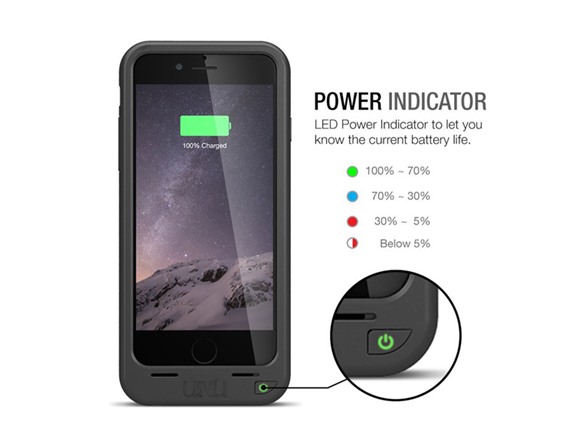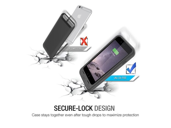 The integrated lithium-polymer batteries of the DX-FREE provide provide enough power to double the battery life of the iPhone 6.