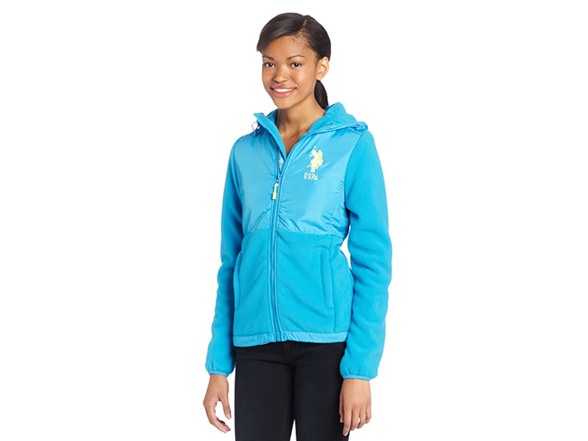 USPA Jrs Hooded Polar Fleece Jacket Sherpa Lining Blue