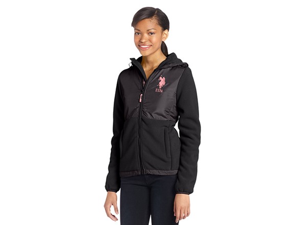 USPA Jrs Hooded Polar Fleece Jacket Sherpa Lining Black