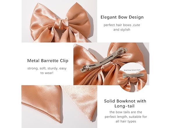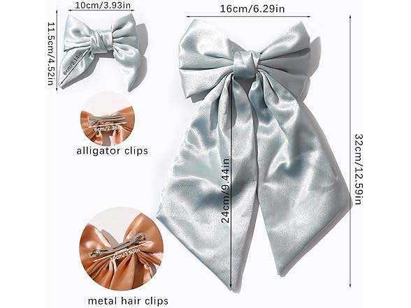 - 【LONG TAIL BOWS SIZE】- Suitable for most hairstyles, long or short, thick, straight, curly, ponytail or half updo. These bow barrettes are beautiful and hold perfectly in the hair. They never pull on your hair or give you a headache Perfect for women and girls of all ages