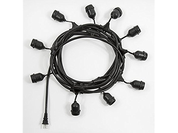 21 foot black durable strand with 10 water proof sockets by Lamplust! Bulbs sold separately.
