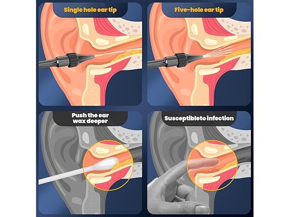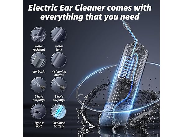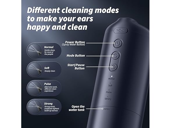 Ear Wax Removal - Electric Ear Cleaner - Ear Irrigation Kit Safe Ear Irrigation Flushing System with 4 Pressure Settings - Effective Ear Wax Removal Tool for Earwax Buildup (Dark Blue)