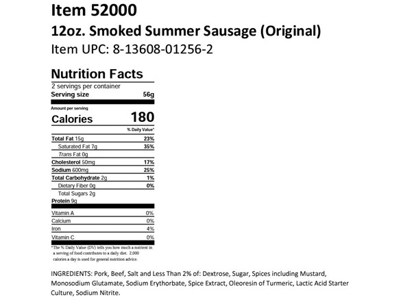 - 12 oz ORIGINAL Naturally Smoked Summer Sausage spiced to perfection with a rich, smoky hickory flavor distinction