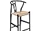 This mid-century bar chair features traditional wood construction paired with a modern form, resulting in a unique piece for your home. The frame consists of solid wood with a black finish, a curved backrest, and sturdy, taut unfinished natural hemp cord seat.