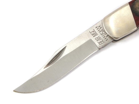 The Bear and Son Forney 65059 3 3/4-inch wood midsize lockback knife with front bolster is made in the United States of America. The blade is high carbon 440 rust resistant and hollow ground. Every knife cuts paper before it leaves the factory. All Bear and Son knives are worked by hand more than 80 times through the manufacturing process. Every knife has a collectors stamp with a dated dotted system. Founded in 1932, Forney Industries is one of America's longest operating family-owned metal working product companies.