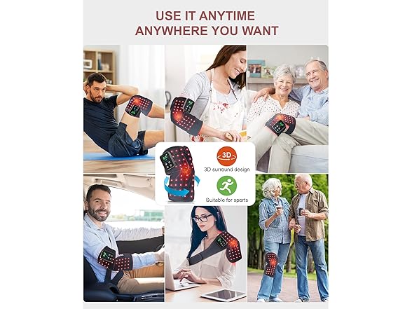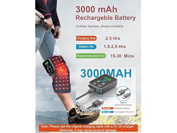 - 【Rechargeable 3000 mAh Battery】As a battery, our knee red light therapy device redefine the concept of instant therapy. They are available for use anytime and anywhere. There's no need to worry about being tripped over by annoying wires. Moreover, with a 3000mAh large-capacity battery, it can be used 4 - 5 times after a single charge and lasts for a week.Important Tips: Fully charge the device before first use for optimal performance