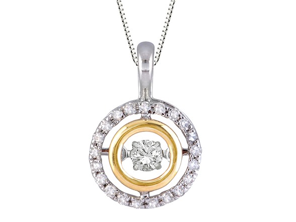 (1) ZKS Designs 10kt White and Yellow Gold Two-Tone "Dancing" Diamond Double Circle Pendant